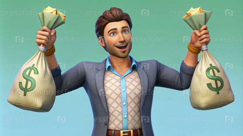 Человек, держащий два мешка с деньгами
