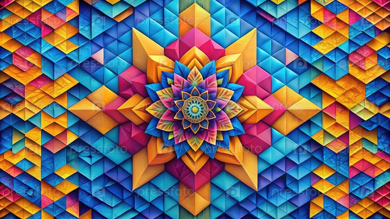 Цветный геометрический цветочный дизайн с яркими треугольниками. генеративная ИИ