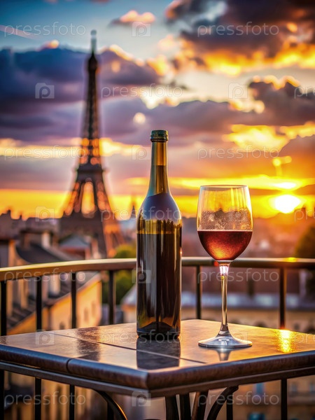 Парижский закат с бокалом вина на террасе