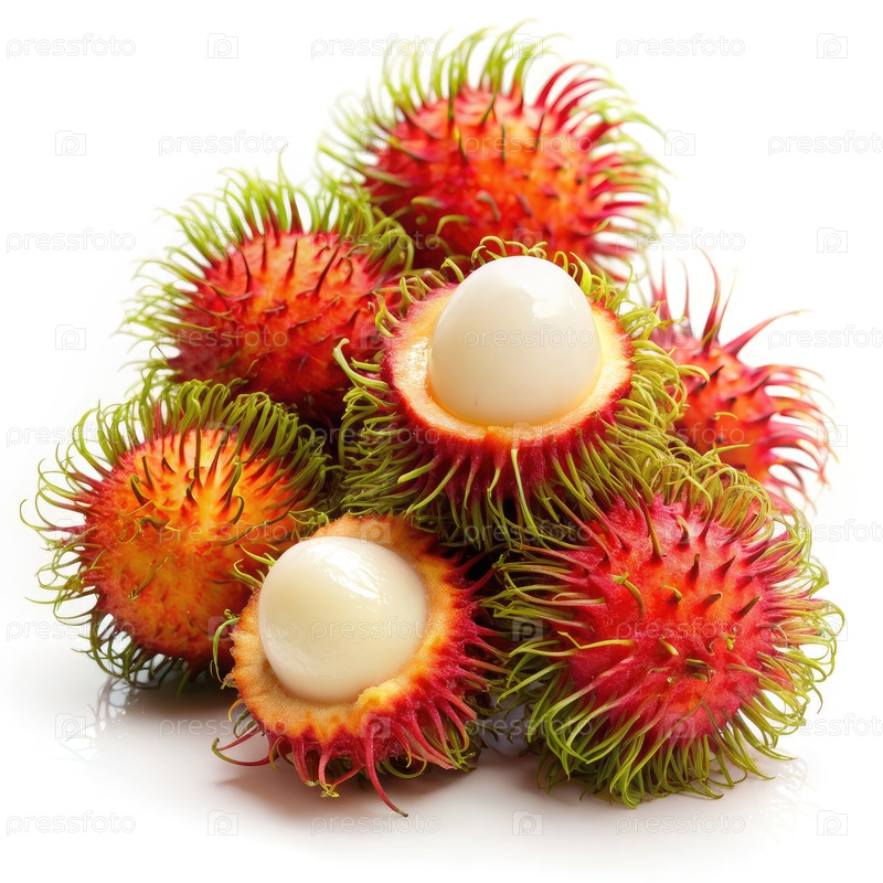 Ближайшее изображение спелого фрукта Рамбутана на белом фоне
