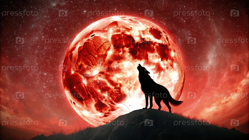 Одинокий волк, выющий под пурпурной полнолунией
