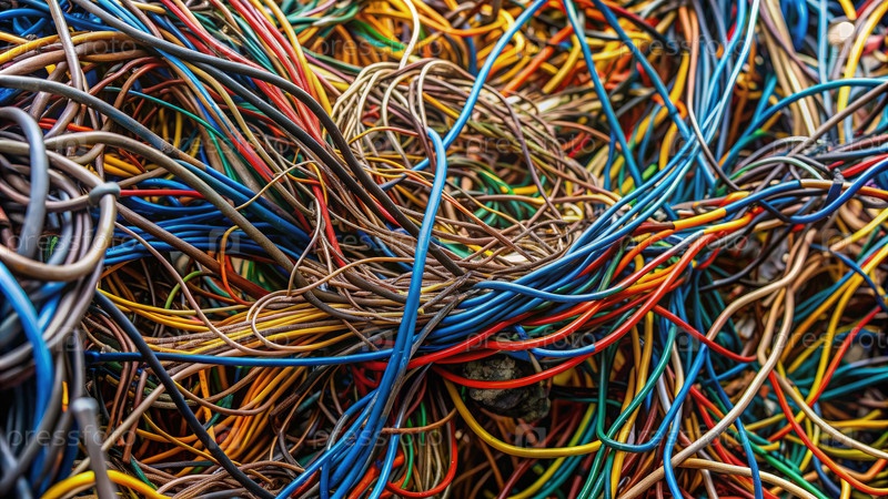 Запутавшаяся куча разноцветных проводов. генеративный ИИ