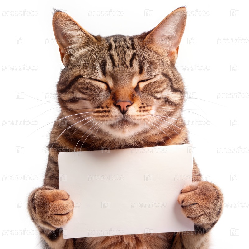 Tabby Cat Holding Blank Sign. генеративный искусственный интеллект счастливый