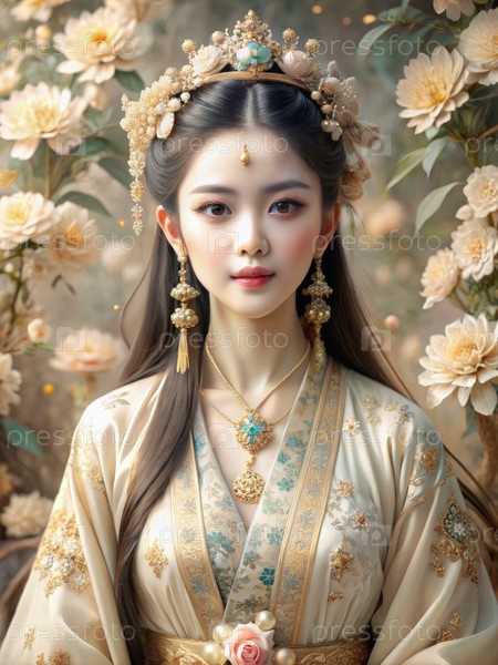 Женщина с длинными волосами, носящая платье и цветок в волосах