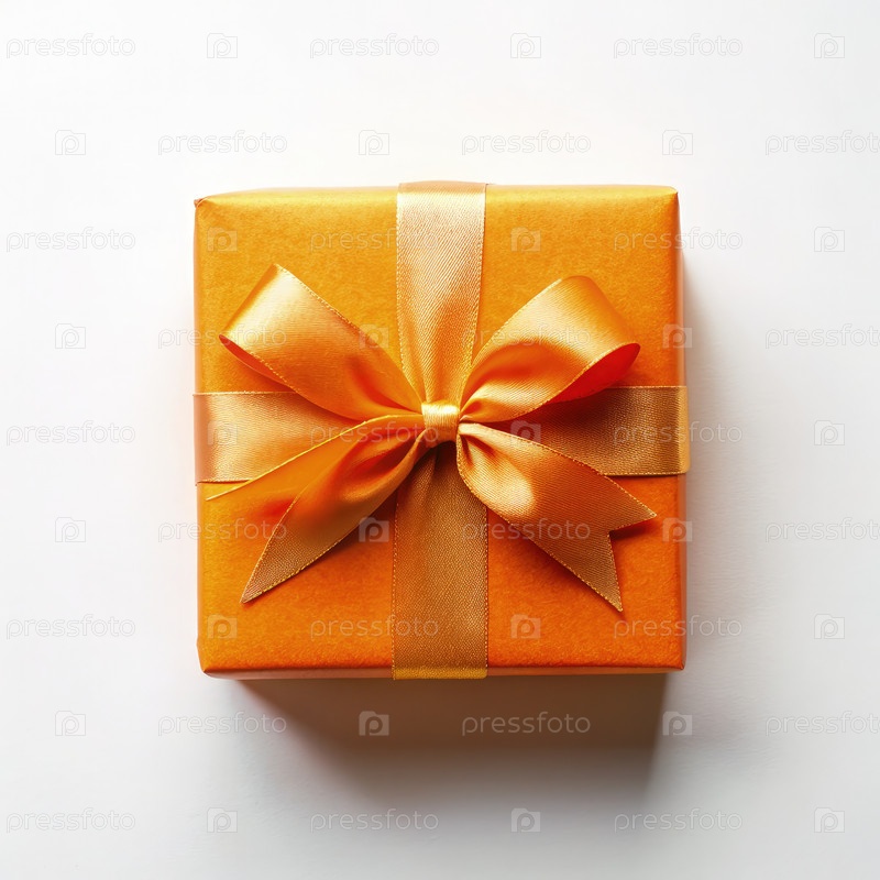 Подарочная коробка с золотой ленточкой на белом фоне