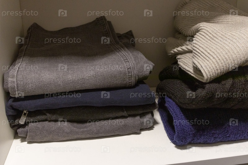 Стол сложенных джинсов и повседневной одежды. ткань