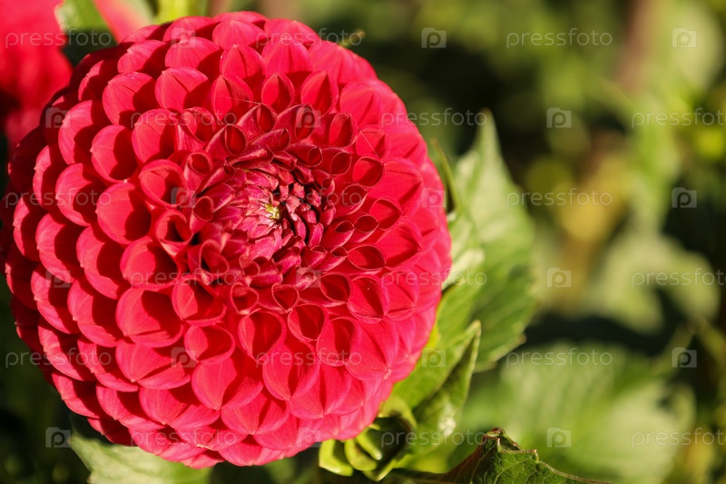Крупный план красной помпонной георгины