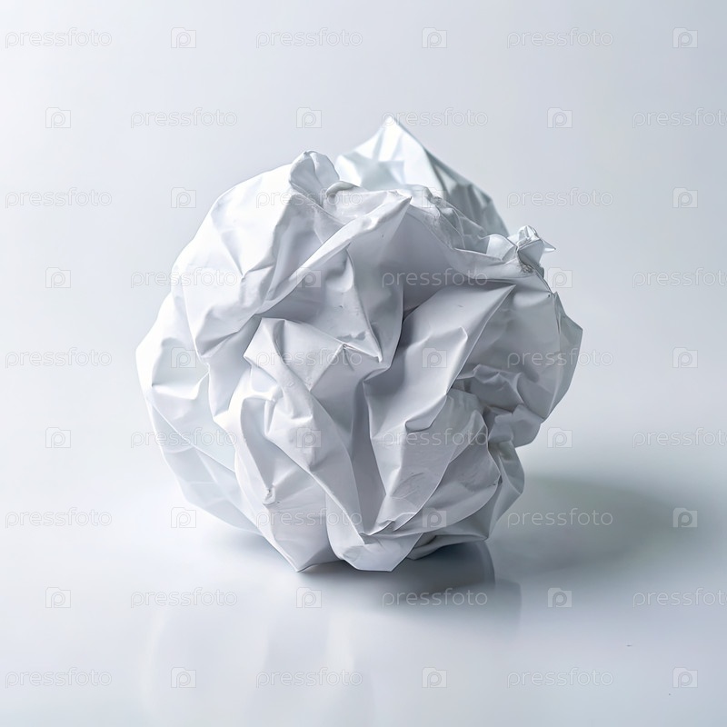 Однообразная свернутая белая бумага - шар на белой поверхности