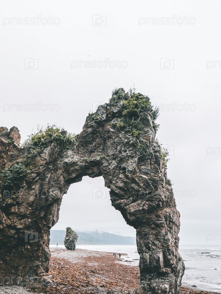 Природная арка на мысе Птичий, остров Сахалин