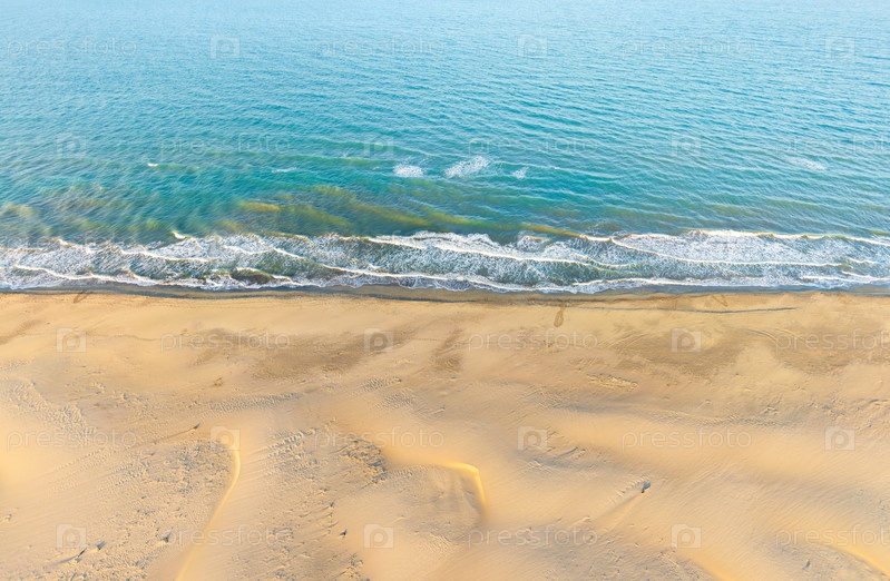 Минималистская воздушная композиция на пляже Патара, море и песок в равной степени разделены по береговой линии при утреннем свете летом