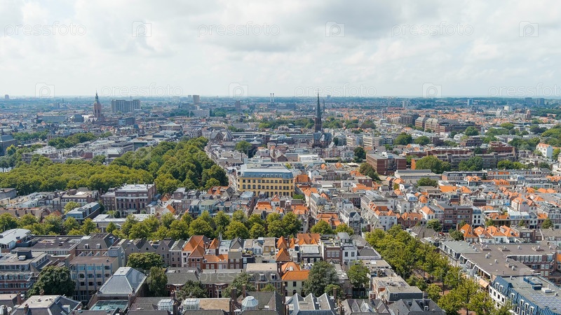 Гаага, Нидерланды. Центр Гааги - исторический центр города. Облачная погода. Летний день, Aerial View
