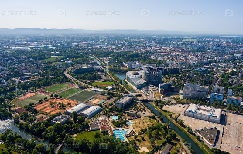 Страсбург, Франция.Панорама города в летний день.Солнечная погода.Вид с воздуха