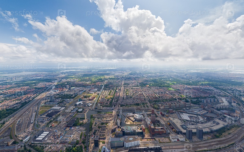 Гаага, Нидерланды.Панорама летнего города в облачной погоде.ГЛАВА ПО СНИМЕ.Вид с воздуха