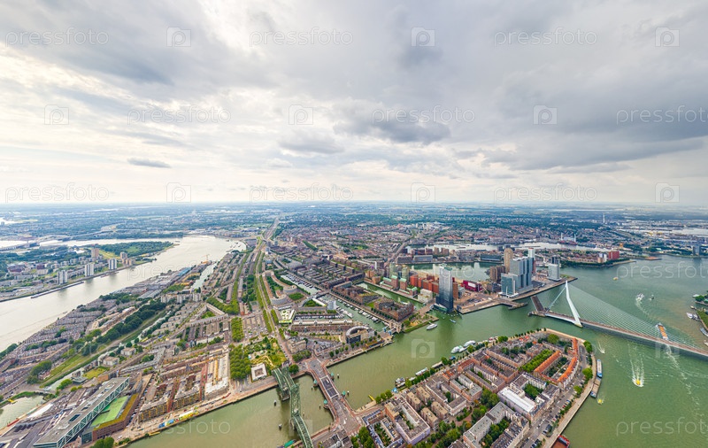 Роттердам, Нидерланды Панорама летнего города в дождливую погоду. Облака. Вид с воздуха