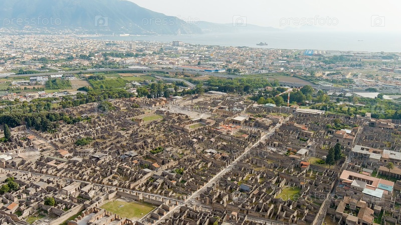 Помпеи - крупный древнеримский город, в настоящее время крупномасштабный археологический комплекс.Общий вид сверху, Aerial View Pompeii