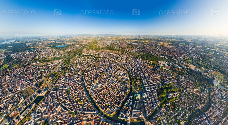 Страсбург, Франция.Панорама города летом утром.Солнечная погода.Вид с воздуха