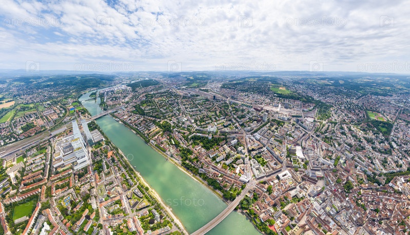 Базель, Швейцария Панорама города Река Рейн Летний день Вид с воздуха