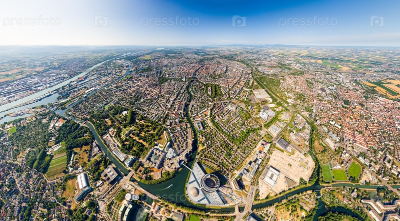 Страсбург, Франция.Панорама города в летний день.Солнечная погода.Вид с воздуха