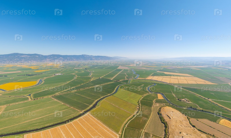 Балат, Дидим, Турция.Авиационный вид передовых ирригационных систем с водными каналами, снабжающими геометрические поля