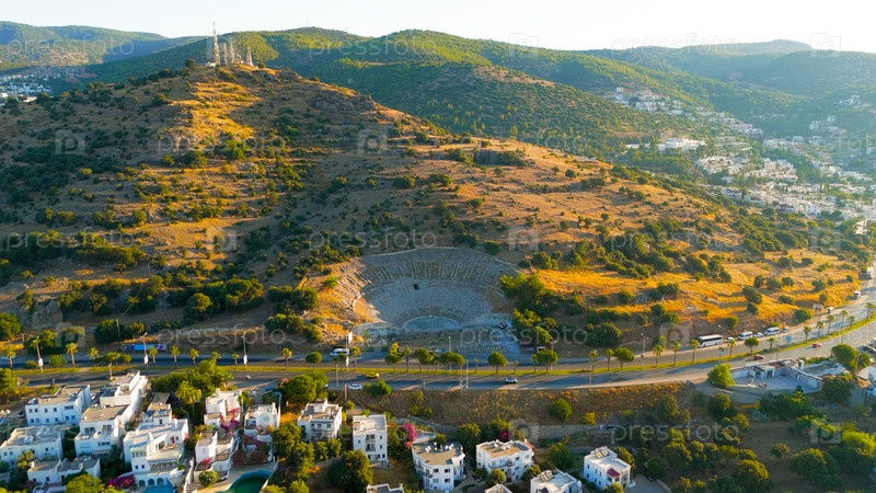 Сценический вид Бодрумского древнего театра, исторического места проведения летних концертов и фестивалей, таких как Международный балетный фестиваль в Бодруме