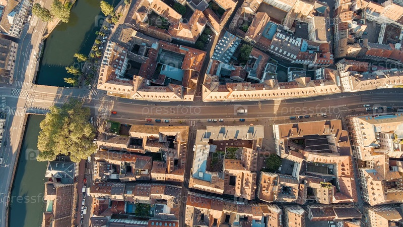 Страсбург, Франция. Панорамный вид. Крыши домов. Летнее утро, Aerial View