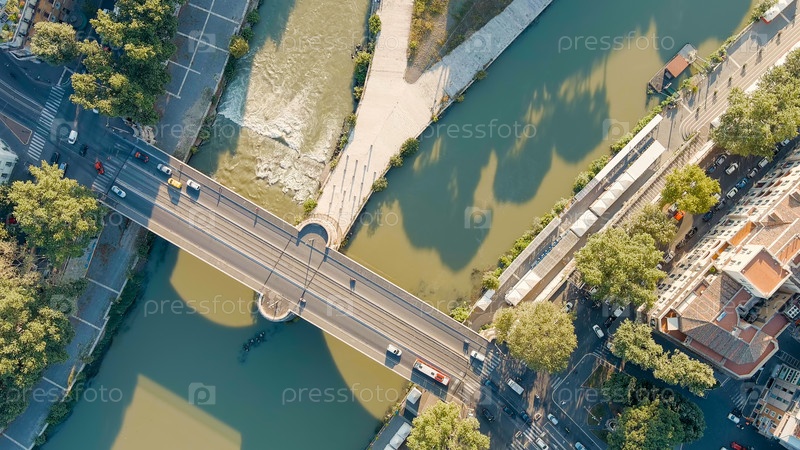 Рим, Италия.Рика Тибр и мост Понте Гарибальди.Лето, Aerial View