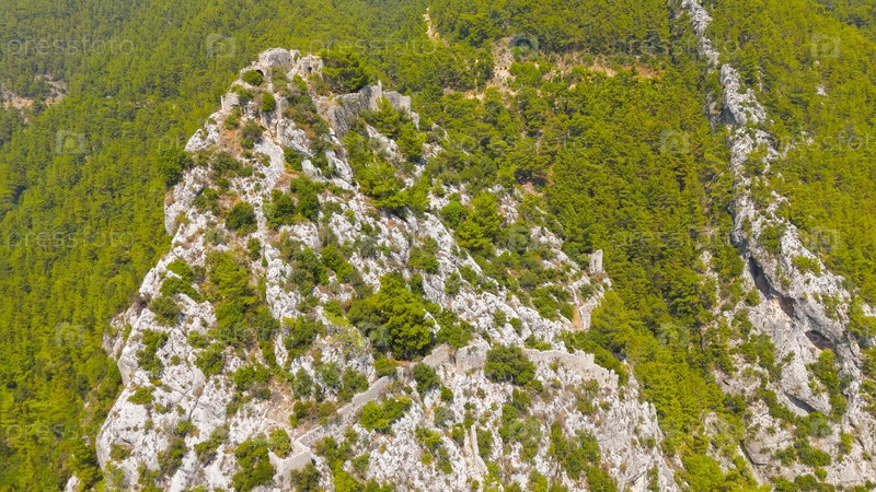 Какалар, Аланья, Турция. вид из воздуха на замок Алара туристическая достопримечательность и место путешествий в летний сезон