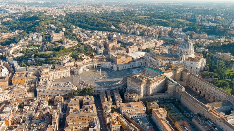 Рим, Италия. Вид на Ватикан. Базилика Сан-Пьетро, Пьяцца Сан-Пьетро. Полет над городом. Вечернее время, Aerial View