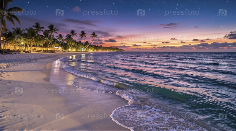 Спокойный закат солнца в пляжном курорте