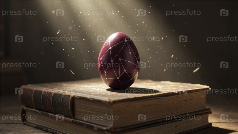 Красное яйцо на древних книгах с образцом созвездия A