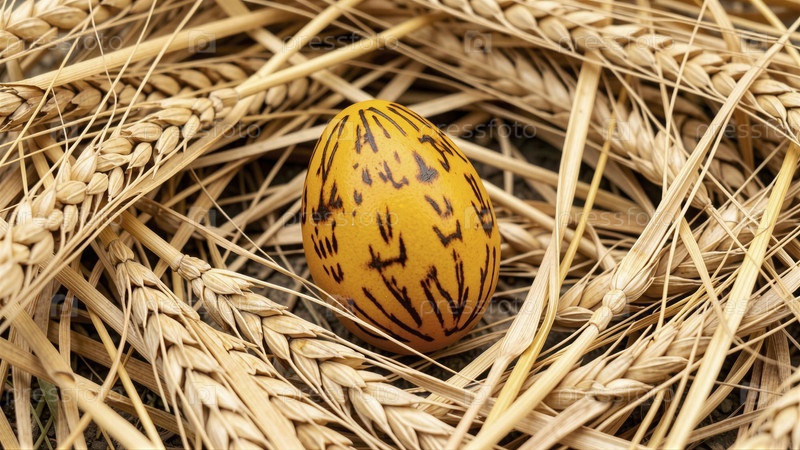 Золотое пасхальное яйцо среди пшеничных стеблей
