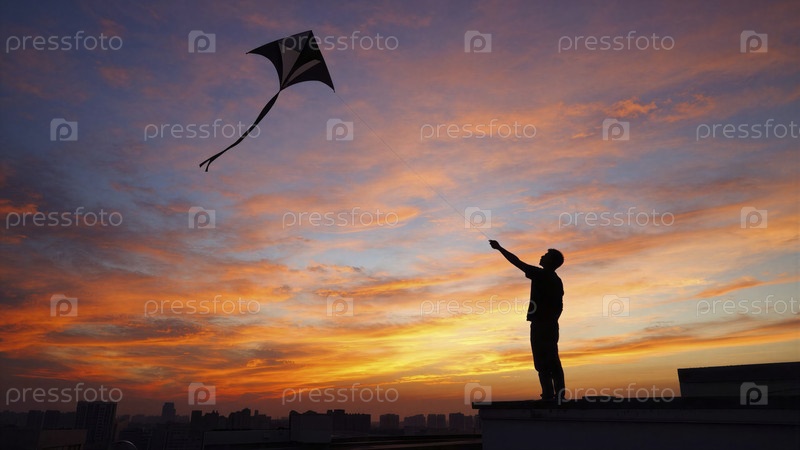 Летать с воздушным змеем на закате