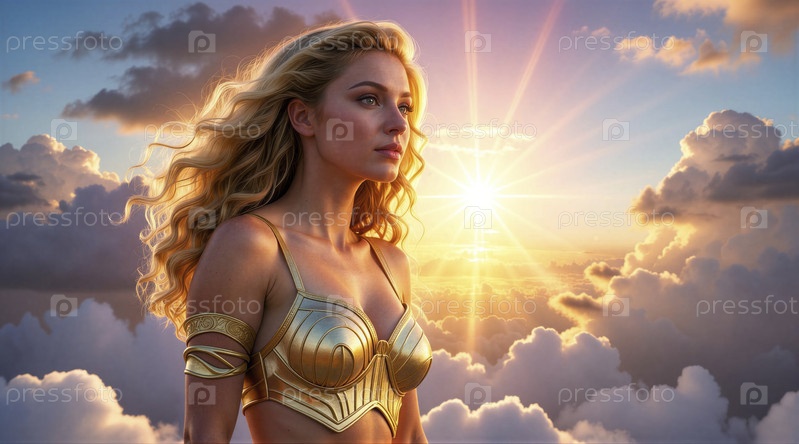 Золотая богиня в небе на закате