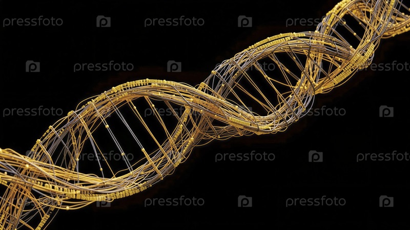 Золотая нить ДНК на черном фоне