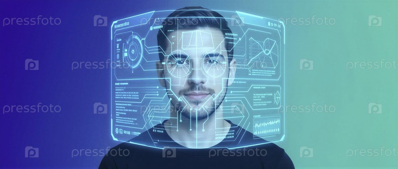 Футуристический интерфейс с человеком в технологическом наложении
