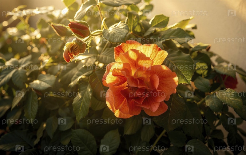 Золотой свет на ярких цветах роз
