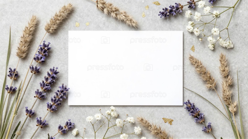 Спокойная цветовая аранжировка с белой карточкой для приветствий