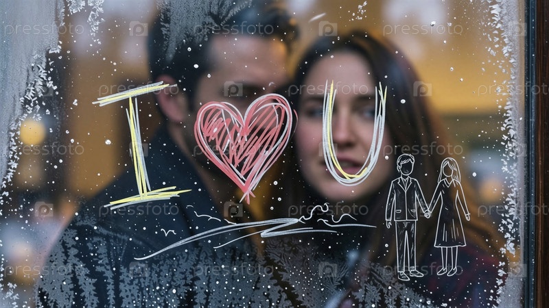 Сердечное послание любви через замороженное стекло