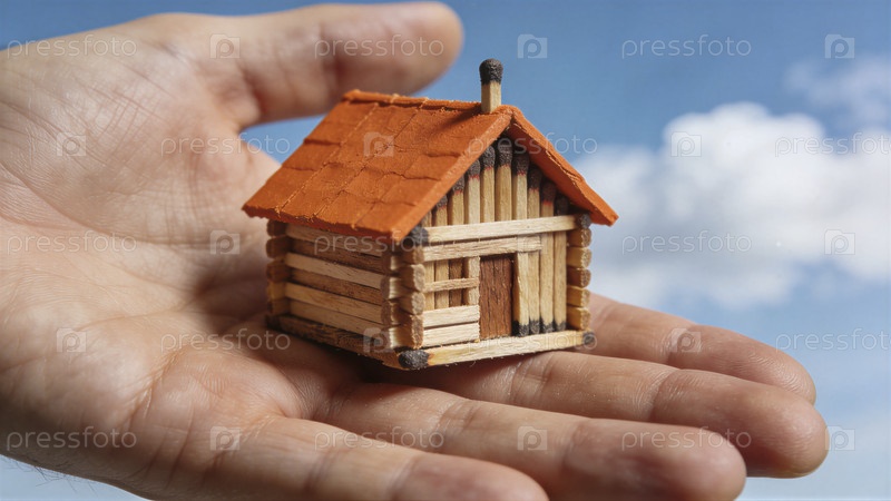 Миниатюрный кабинет с деревянными спичками в руке