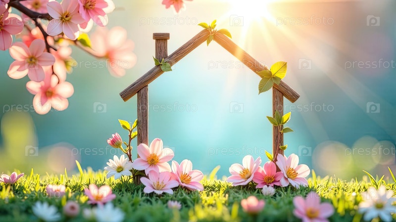 Весенняя двойная коттеджная рама - приглашение на недвижимость, владение домом, аренду, ипотеку или открытый дом