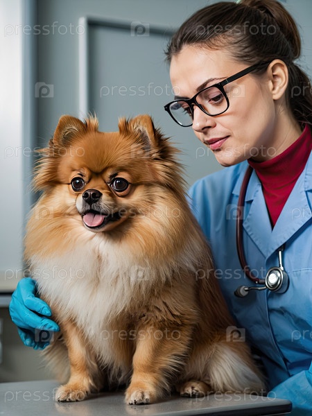 Помераньян на экзамене в красных очках ? умный шпиц, тест породы, эмоциональное состояние, медицинский осмотр, прием к врачу