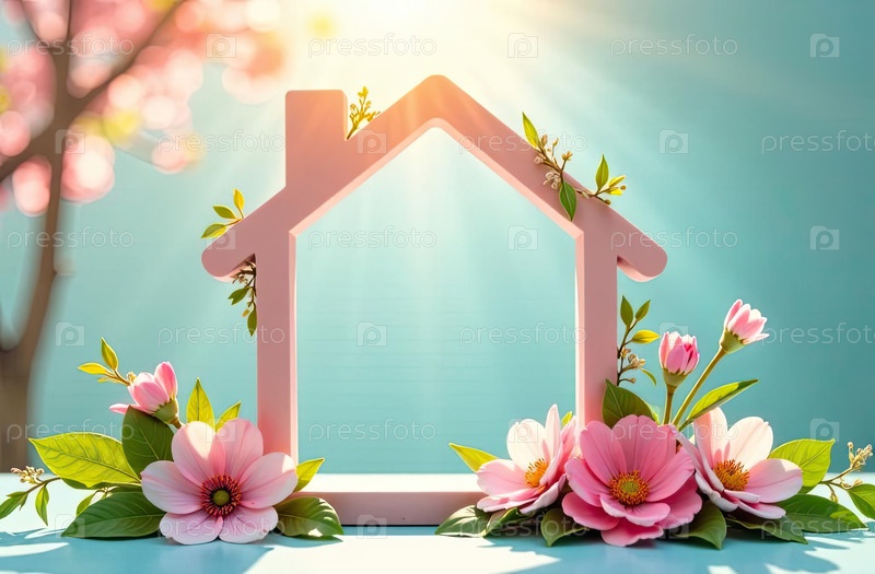 Дом весеннего цветения ? дом на продажу, недвижимость, ипотека или коттедж, баннер по недвижимости с цветками