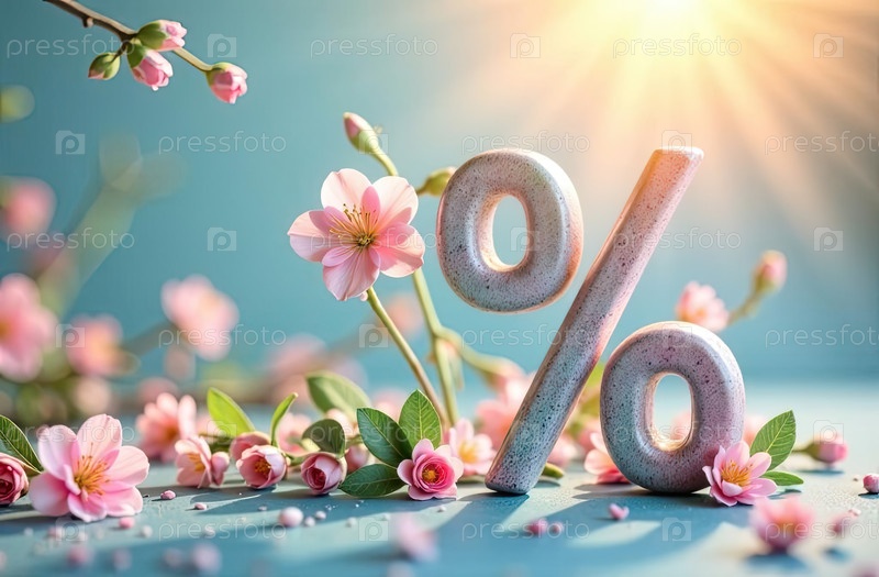 Символ весеннего процента с цветом вишни ? событие продаж, скидка, маркетинг, бонусный сезон, цветочный баннер