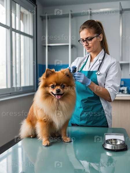 Спитц с ветеринаром в очках ? ожидание пациента, взвешивание, обследование здоровья, спокойствие, уход за собой, профилактика заболеваний, консультация ветеринара