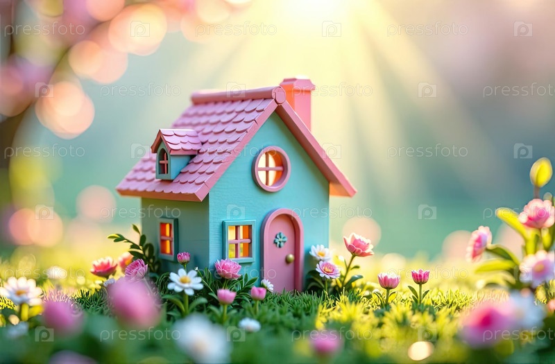 Пастельный дом в цветущем саду, весенняя недвижимость на продажу или семейная аренда, предложение жилья в сельской местности