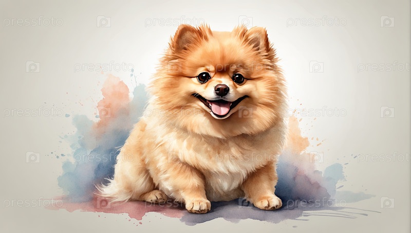 Пушистый помираниан на бежевом фоне, акварельная печать для ярмарки животных, журнал по уходу за питомцами, реклама, календарь