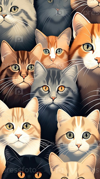 Рисунок из мультфильмов вертикальных кошек ? красочный, игривый, tabby, оранжево-коричневый, печать для аксессуаров, обложка, одеяло, реклама в зоомагазине