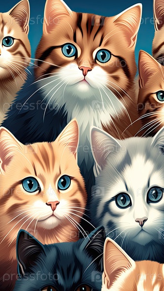 Яркий вертикальный рисунок кошек ? имбирь, синий, белый, коричневый, печать на стене, подушка, домашнее одеяло, ветеринарная и пищевая реклама, милые котята