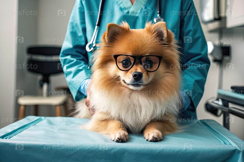 Собака и ветеринар в синей форме - больничный осмотр, процедура инъекции, вакцинация, беспокойство по поводу домашних животных, медицинское лечение