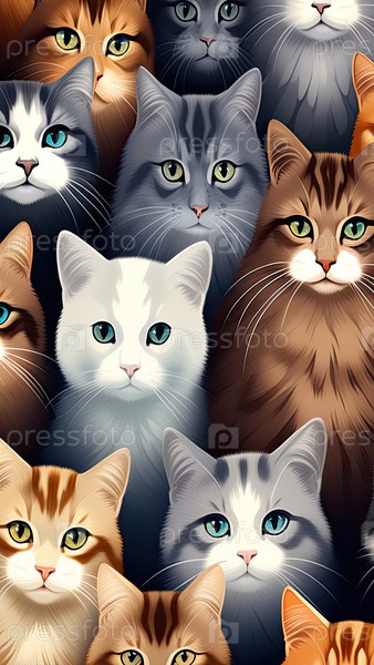 Пастельный вертикальный рисунок кошек ? шотландский склад, сиамский, имбирь, уютный настенный принт, модная текстиль, бутик для домашних животных, плакат по уходу за продуктами питания